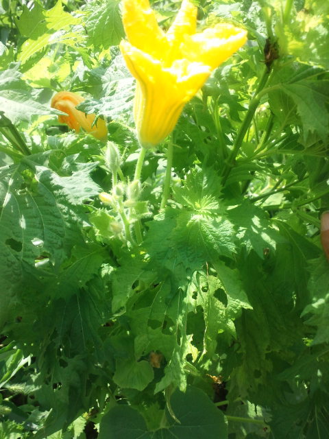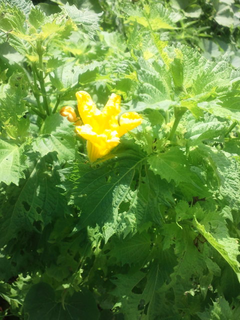 見た瞬間は、カボチャがオオバ(シソ)を登って花を咲かしてるのかと思いました。