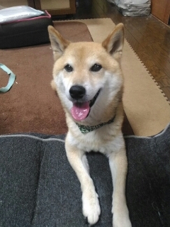 後は寝るだけなんだワンの柴犬さくらに