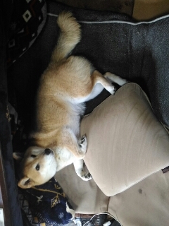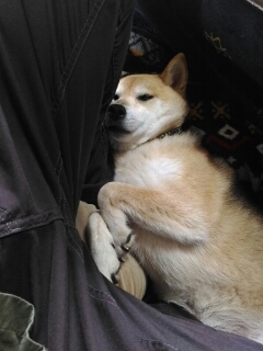 柴犬さくらは、座椅子を二つ占拠してノビノビくつろいでました。