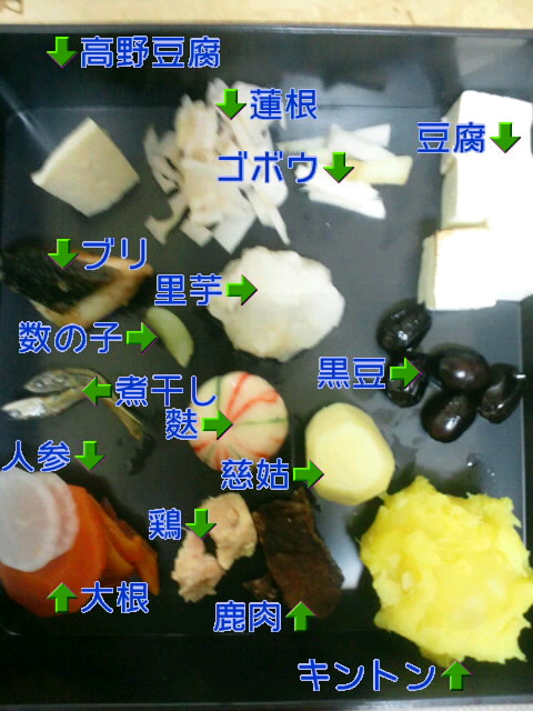 ブリ、数の子、里芋、黒豆、