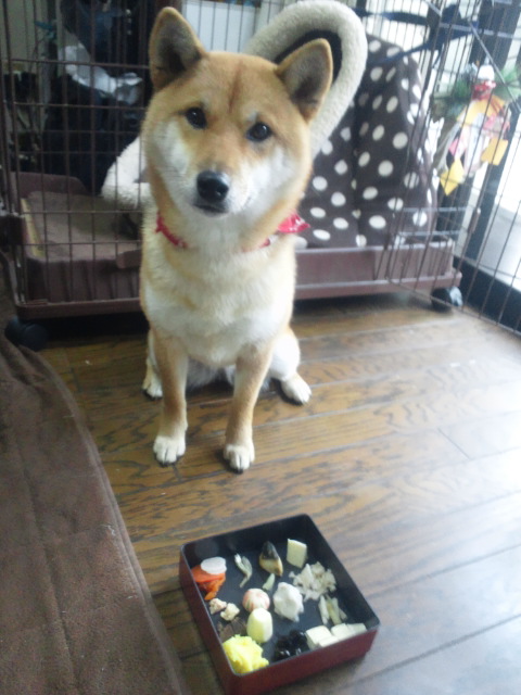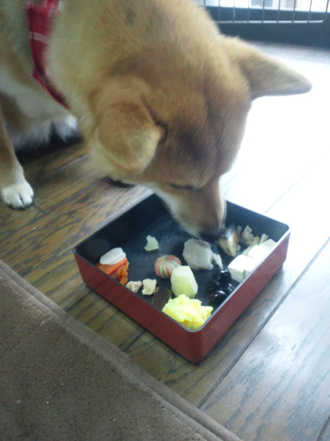 お正月の朝は、柴犬さくらも、お節!