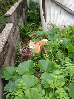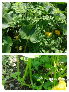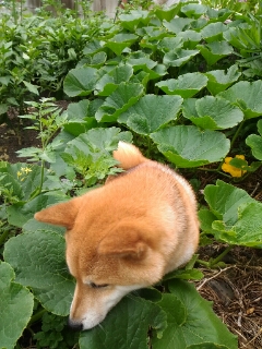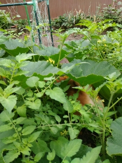 畑の片隅では、南瓜と野良トマトが元気いっぱい!