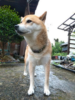 トイレ外派の柴犬さくら、雨の谷間におトイレタイム。