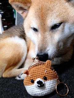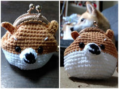 柴犬を編み図見て編み上げて、がま口をつけるだけですが、イイ感じでしょ。