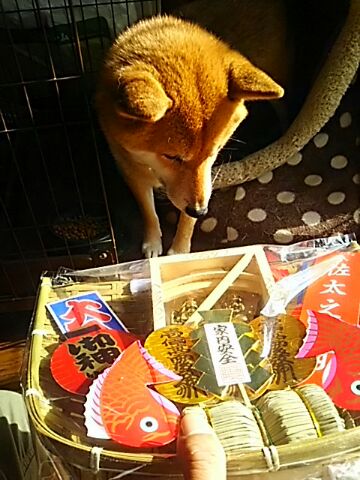 縁起物なので、柴犬さくらにも少しだけ進呈。
