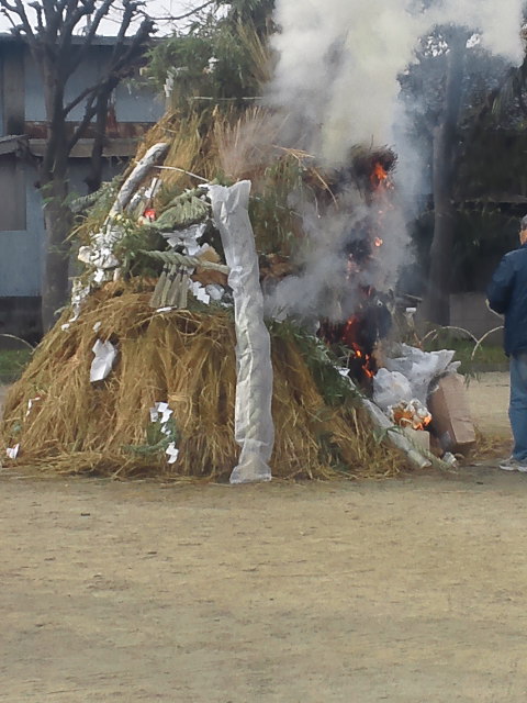 今日は、近所の公園で、「どんど焼き」が行われました。