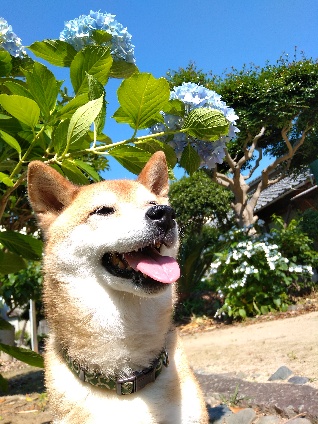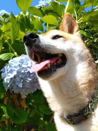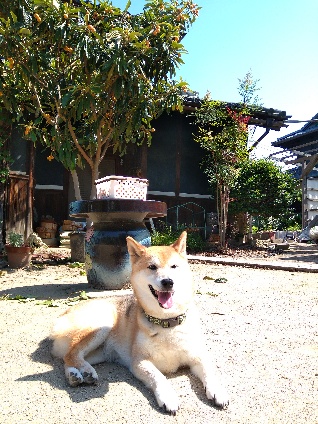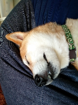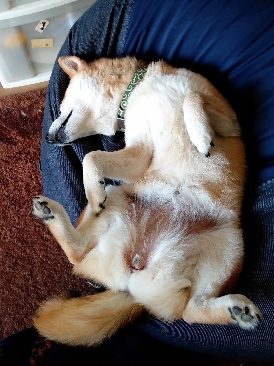 毛の少ないお腹を出して放熱するワンの柴犬さくらに
