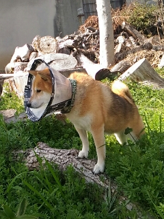 エリカラつけた柴犬さくら。