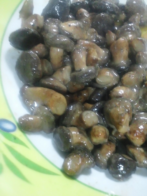 収穫したチビしいたけは、たっぷりのバターで炒めて醤油で頂きました!
