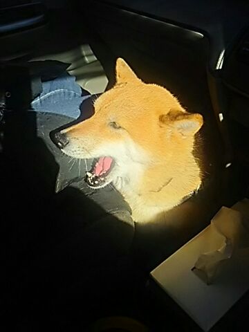 って思いきや、車に乗った瞬間に大あくび( ̄ー ̄)