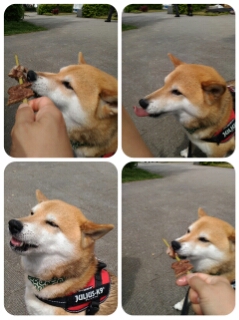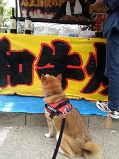 察しの良い柴犬さん、祭は肉串と信じているようです。