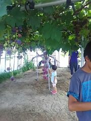 で、畑に着いたら、早速葡萄を試食する子供達。