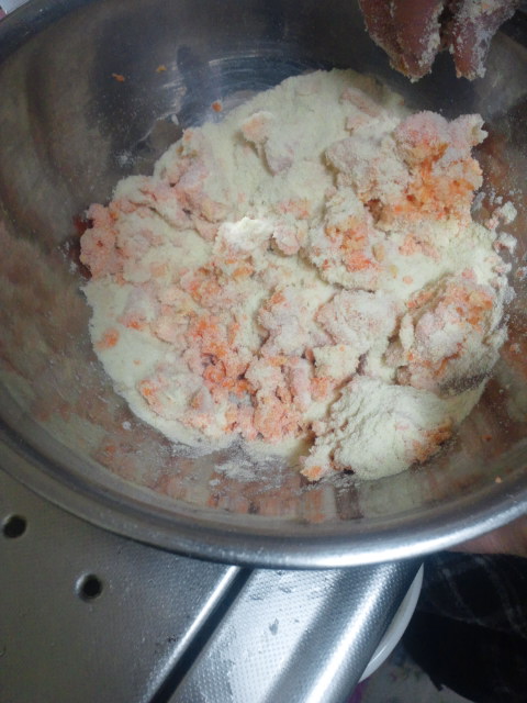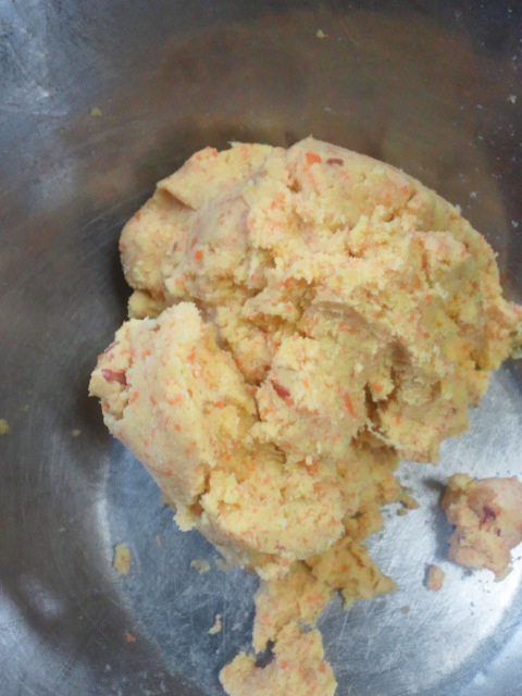 ニンジンよりは、カボチャかサツマイモの方が粘りが出て、まとめやすかったかなぁ~。