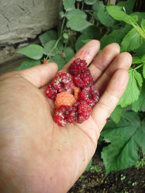 ラズベリーの赤と黄色の熟した実がいくつかあったので、収穫しました♪