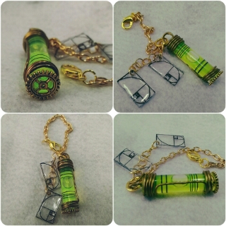 本物の水平器と黄金比のプレートを組み合わせたチャームです。