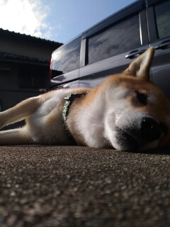 さくらちゃん!お外でヘソ天しちゃうとは豪快ですね~。