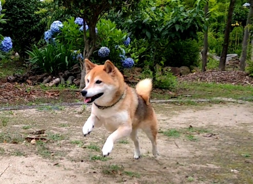 お庭が広いのでリードなしで土の上で走ったり遊んだり、さくらちゃんは、とってもいい環境ですね。