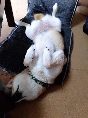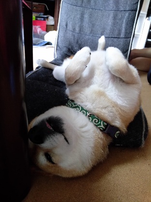 暑いから、エアコン部屋に早く戻らないとダメなんだワンの柴犬さくらに