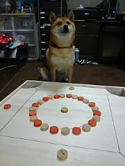 落ちた駒が、盤中央下くらいまで、転がってしまい、大変。