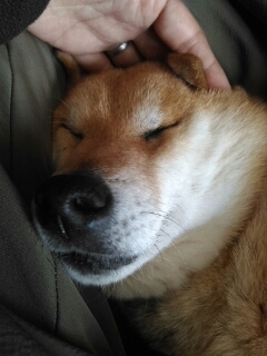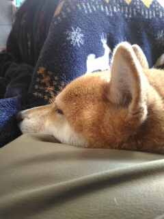 さて、柴犬さくらさん、パパの足を顎枕にお昼寝…