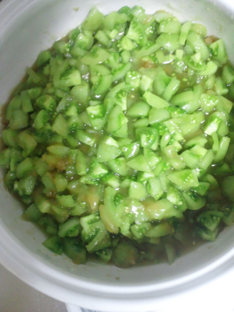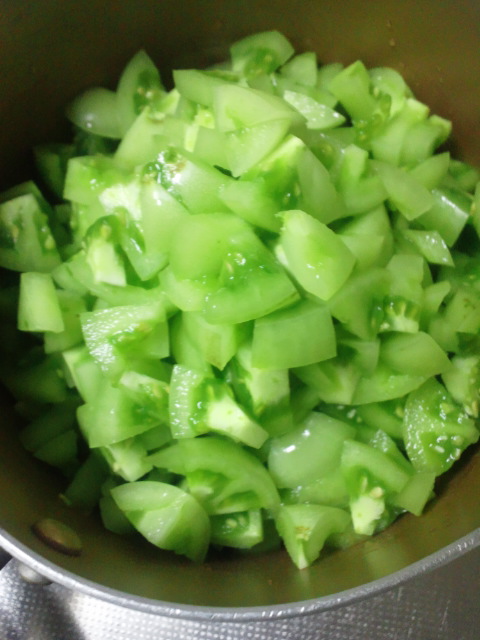 先日、摘果したグリーントマトでジャム作ってみると、結構美味しかったので、今回もジャムにします。