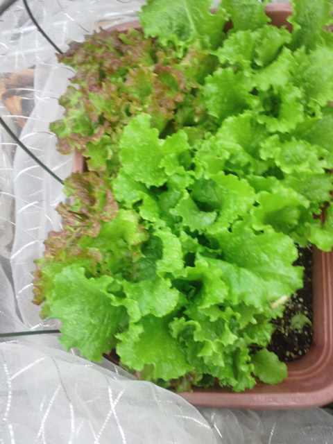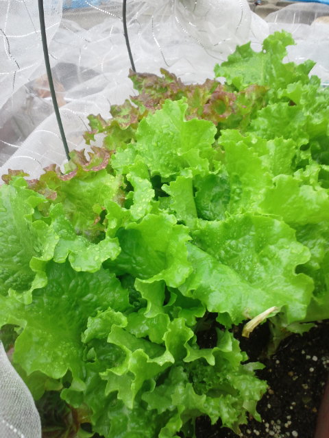 今回は、ネットのおかげで全く虫も着かず綺麗なサニーレタスが収穫できてますV(^-^)V