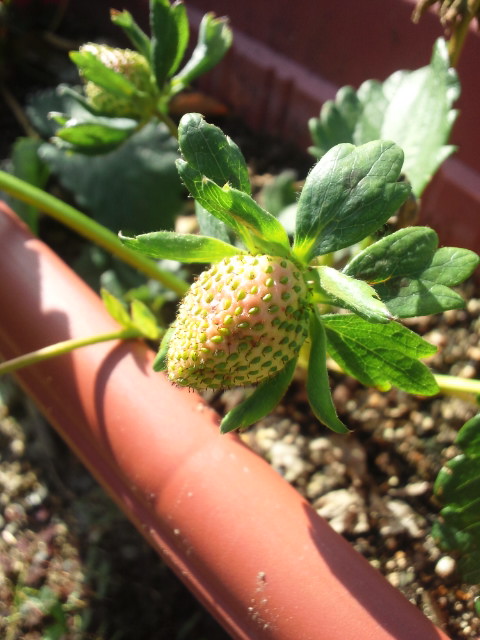 イチゴが赤くなって、食べる時の娘さんの笑顔がはやく見たいですね。