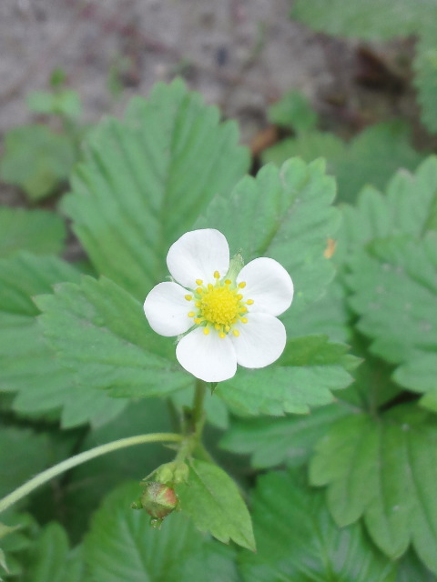 ワイルドストロベリーの花も咲いています。