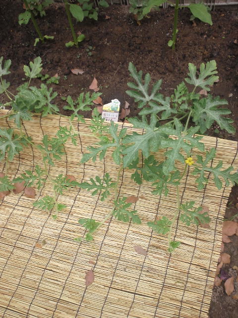 しき藁代わりに敷いている所にシッカリツルを巻ながら伸びています。