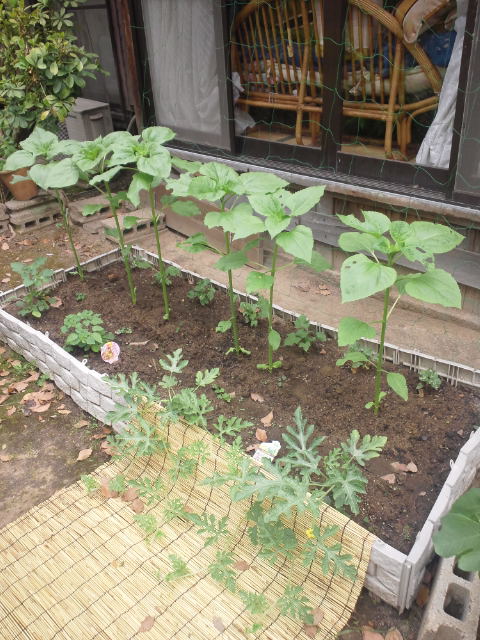 ヒマワリの成長が思っているより早く、日当たりが悪くなってしまったので、ちょっと心配です。
