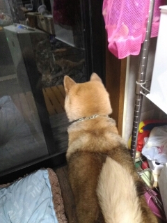 アッそうそう・・我が家のリッキーもカーテン越しに外を見つめて番犬ごっこしてますwww