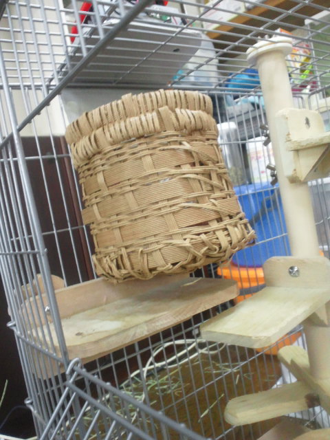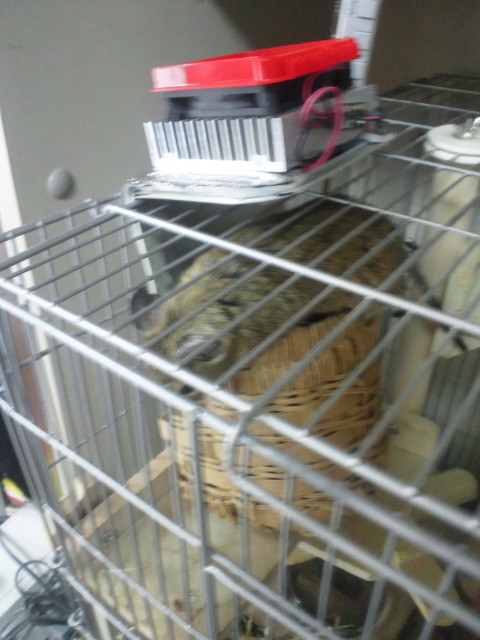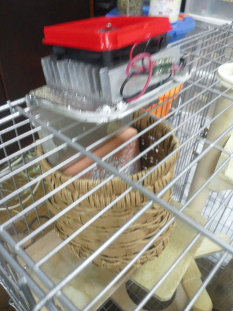 ケージの上の隙間から差し込み、下からお家を付けます。