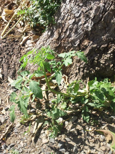 確かに、トマトの芽掻きした脇芽を捨ててた付近です。
