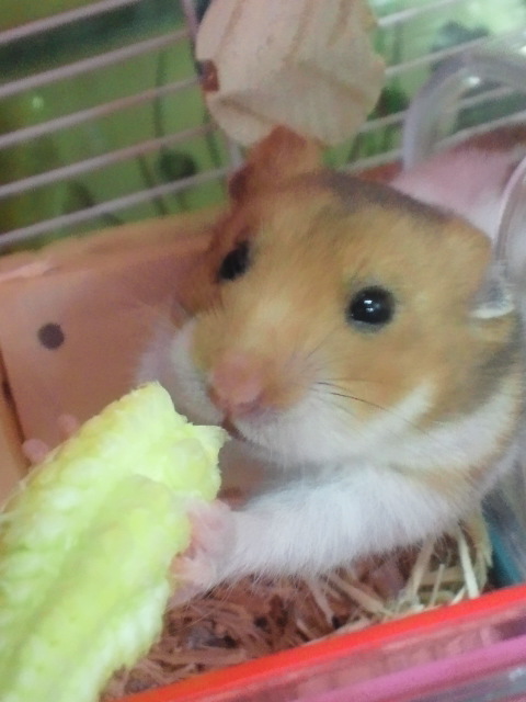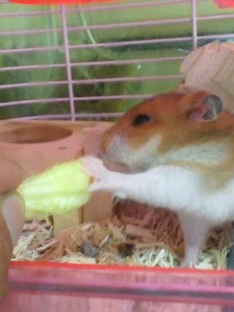 新鮮なヤングコーンはハムスターにも美味しさわかるんでしょうね~。