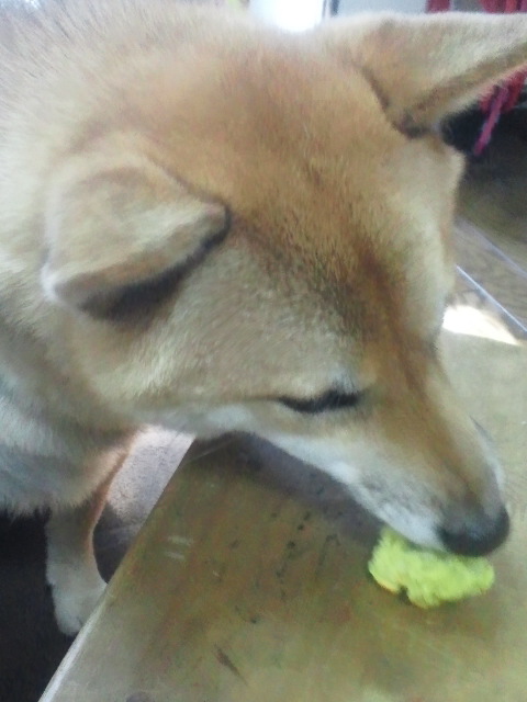 このままじゃ、柴犬さくらに悪戯されても困るので、おやつ進呈。