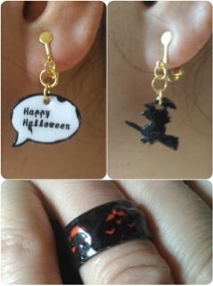 ジャックオランタン指輪、ほうき魔女イヤリング、吹き出しイヤリングです!