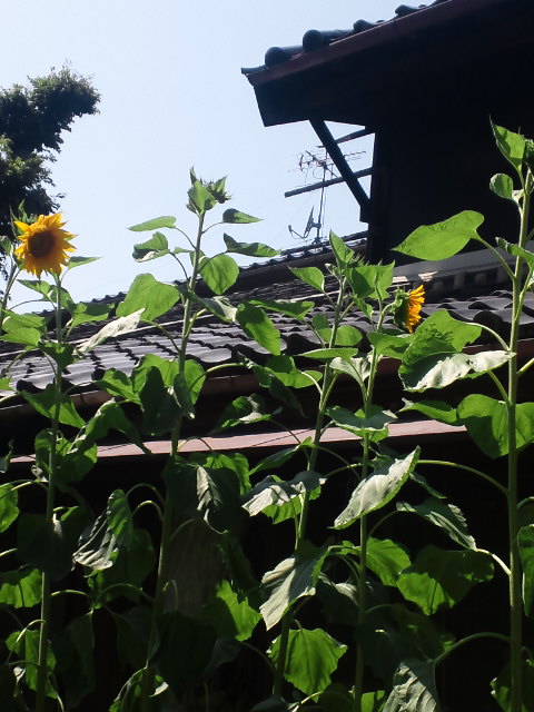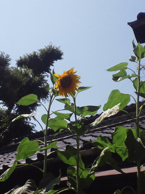 最初に咲いたヒマワリは、ずいぶん立派になってます。