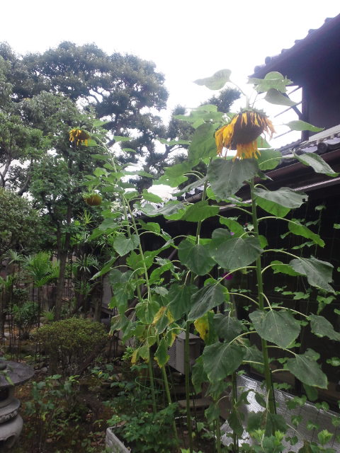 夏花壇のヒマワリは日に日にダレダレが増して行きます。