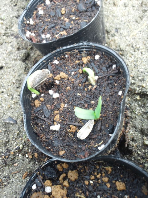 同じ時期に蒔いた朝顔も芽を出し始めてます。