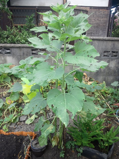 7月の頭にダメ元で植えたヒマワリは、結構大きく立派になってきました。