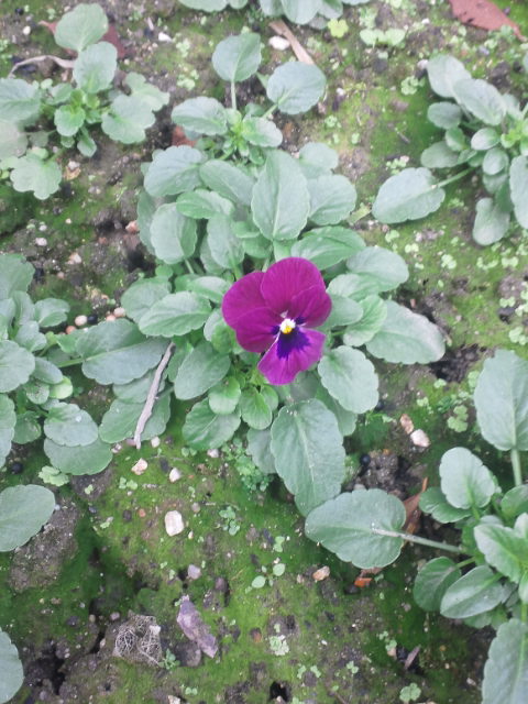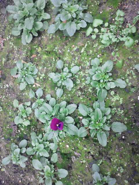 まだ、1輪しか咲いていませんが、ビオラ畑のビオラたちは、元気に育ってます。