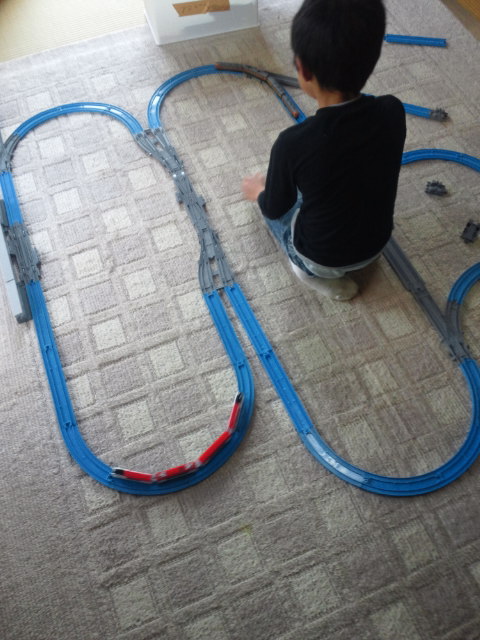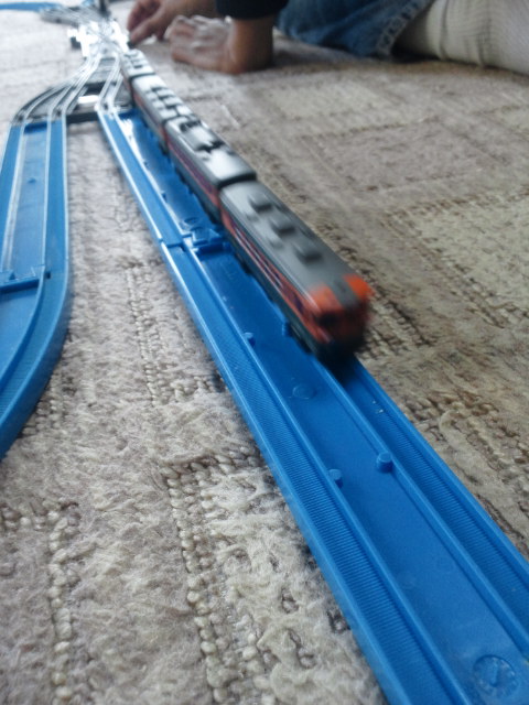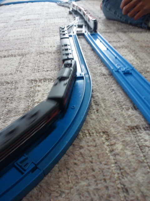 分岐の操作とかが、今までのプラレールと違ってしょっちゅう衝突事故を起こしていますが、楽しいらしいです。