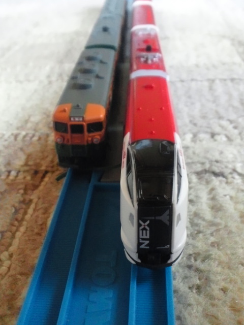 無駄にレールを並べる必要が無いので、すれ違いは迫力!