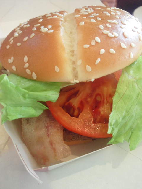 普通のベーコンレタスバーガーをデカくして、トマトを足した感じ。