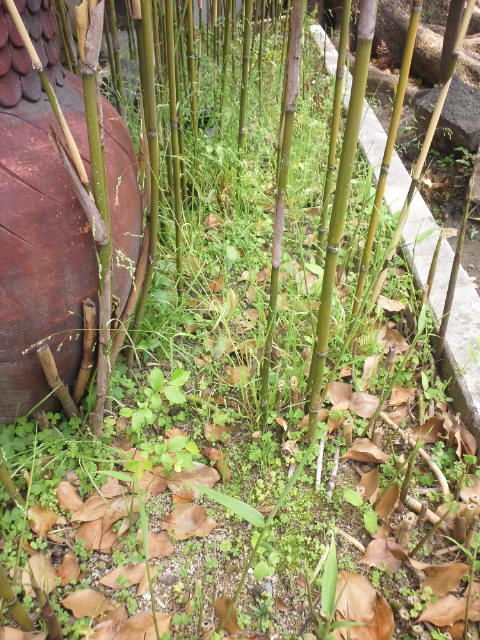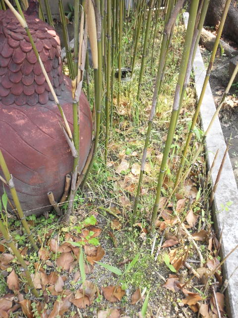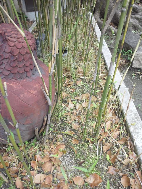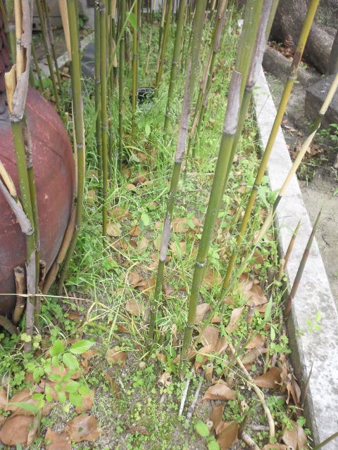 今回は、竹が群生している根元の雑草がターゲット!