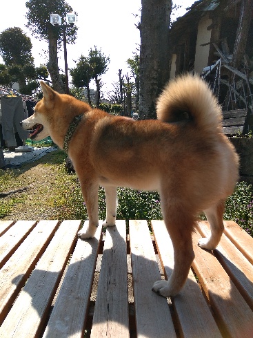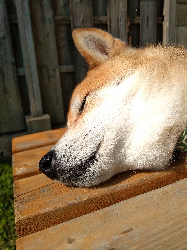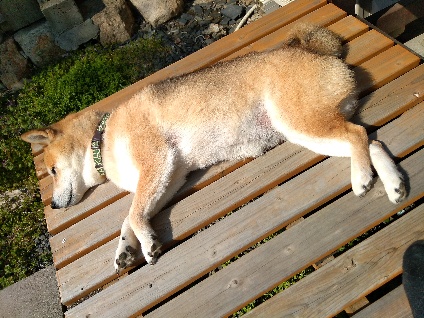温かかったので、柴犬さくら、久し振りにウッドデッキでノンビリとしてました。