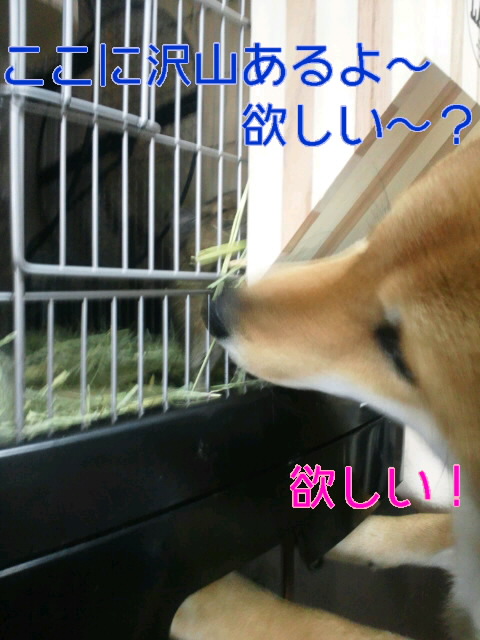 すると、なぜかケージから牧草が落ちて来ます(笑)