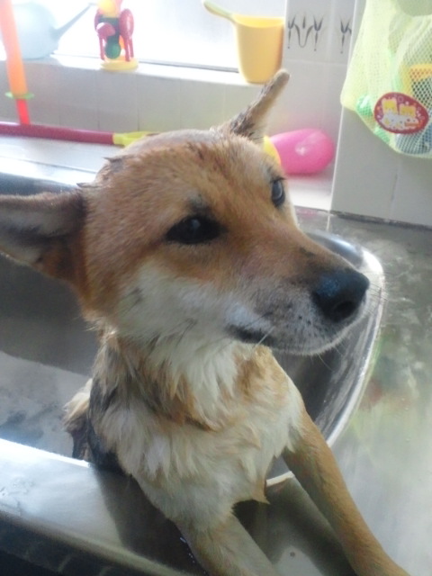 シャワーは、温かいから気持ち良いらしいけど、シャンプーされるのは嫌みたいでした。