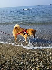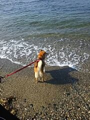 柴犬さくらは、海が最後と分かってるのか、積極的( ̄ー ̄)