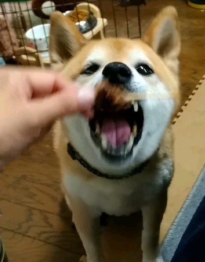 ドッグフードはちゃんと噛むのに、もはや丸呑み。
